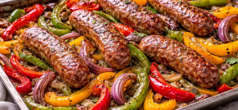 Sheet-Pan Sausage & Peppers With Onions