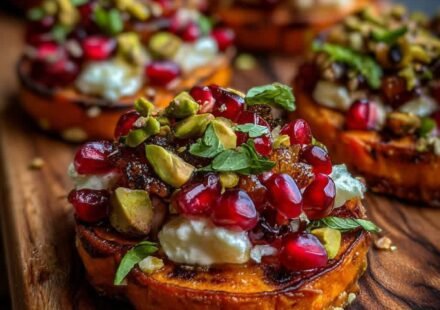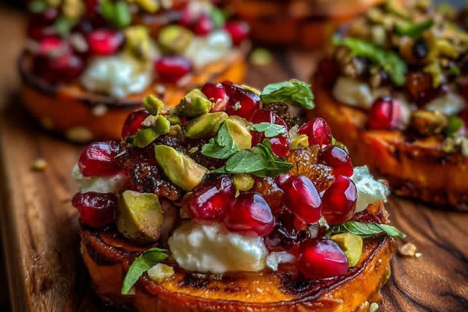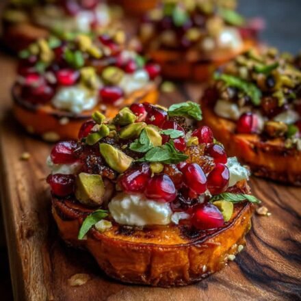 Sweet Potato Rounds with Brie, Pomegranate and Pistachios If you’re looking for an appetizer that’s as beautiful as it is delicious, these Sweet Potato Rounds with Brie, Pomegranate and Pistachios are guaranteed to impress. Tender roasted sweet potato…
