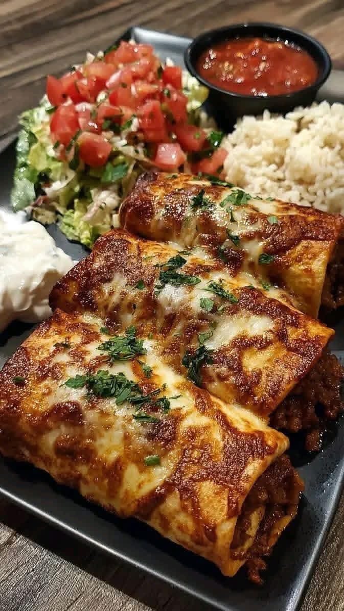 Homemade Beef Chimichangas with Melted Cheese