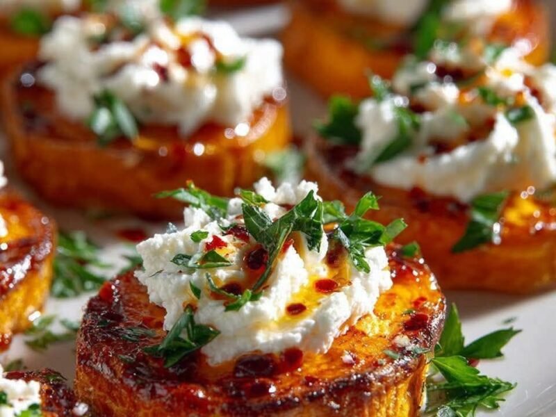 Sweet Potato Appetizer with Whipped Feta and Spicy Chili Oil