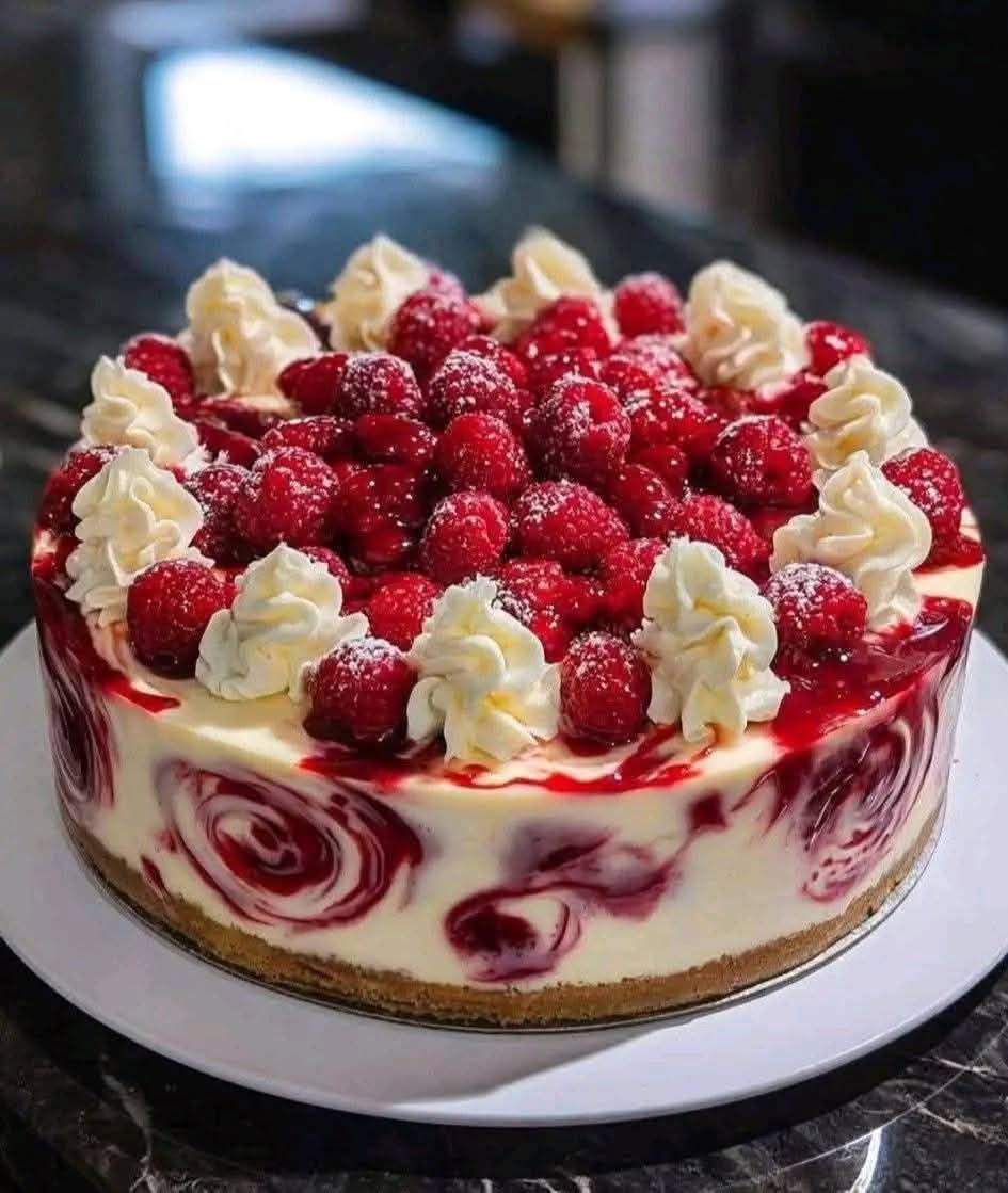Easy White Chocolate Cheesecake with Fresh Raspberries