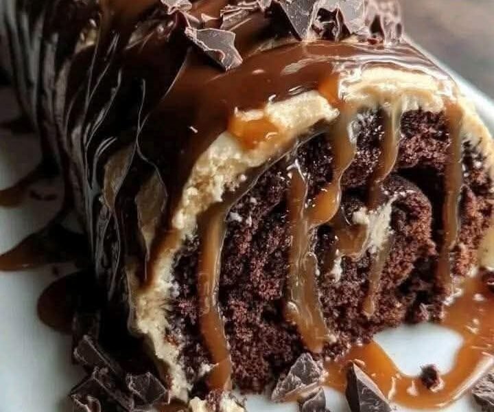 Easy Chocolate Caramel Cake Roll (Turtle Style)