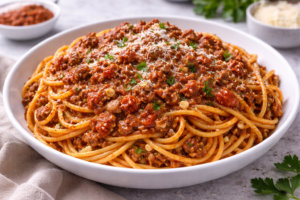 Spaghetti with Meat Sauce is a classic for a reason—it’s comforting, reliable, and endlessly satisfying. This weeknight version keeps things simple while delivering rich, hearty flavor that tastes like it simmered all day.